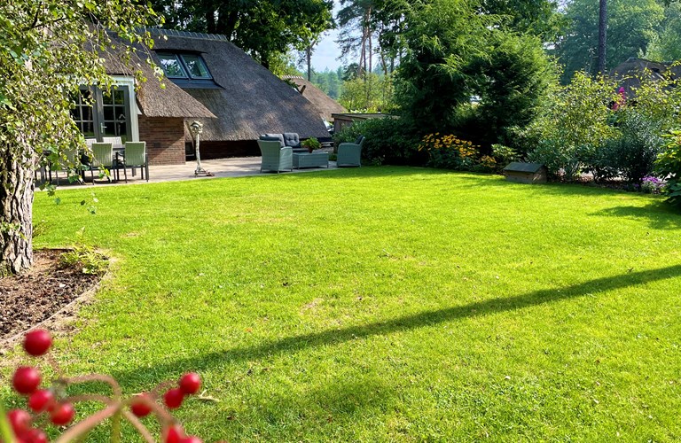 De foto’s laten al zien wat de ligging van de Zwijnenstal uniek maakt: een heerlijk grote tuin met gazon, omzoomd door mooie beplanting. Uw kinderen kunnen heerlijk spelen op het grootste grasveld van het park. De tuin biedt zowel plekjes in de zon als in de schaduw, op elk moment van de dag. Hier ontbijt u in de zon op 1 van de heerlijk plekjes op het ruime terras en waant u zich in de beschutting van de tuin alleen op de wereld. Droomt u maar lekker weg op dit unieke plekje.....