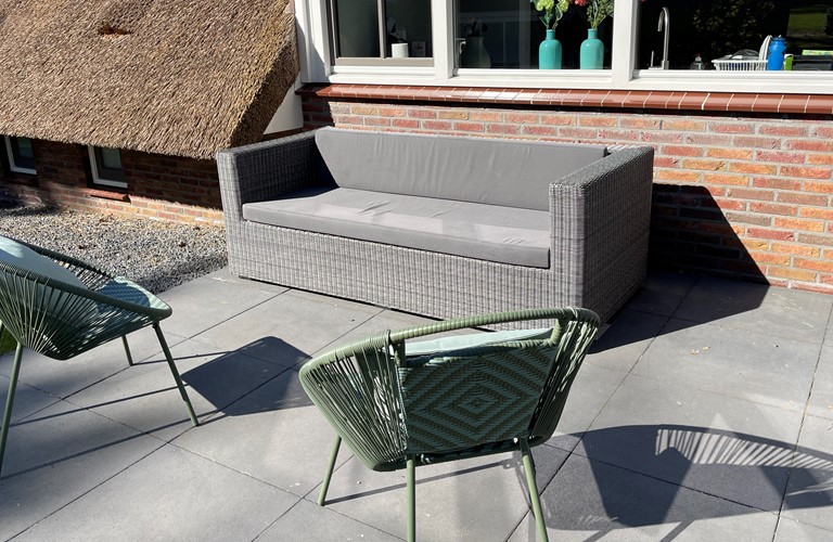 Via openslaande deuren komt u vanuit de living in de tuin met 3 terrassen zodat u altijd van de zon of schaduw kunt genieten op de loungebank of tuinset. De openslaande deuren in de woonkamer en het raam in de slaapkamer beneden zijn uitgerust met horren.