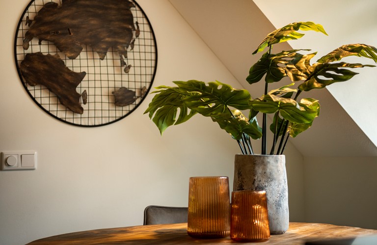 Een huis, van alle gemakken voorzien, gemeubileerd in een eigentijdse warme stijl.