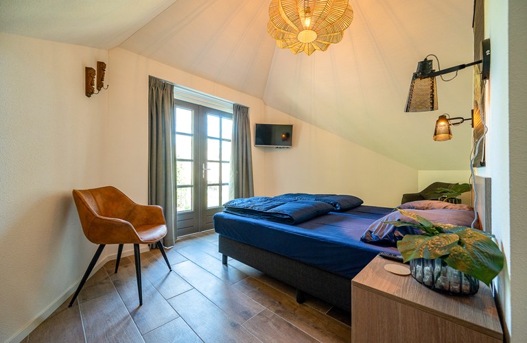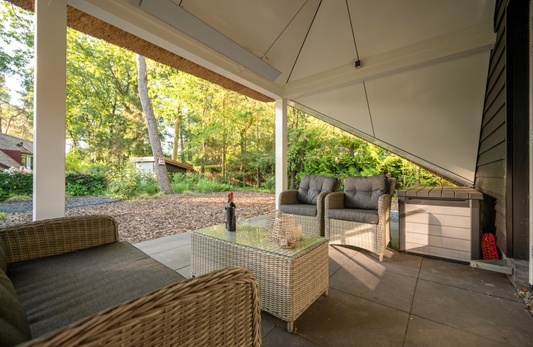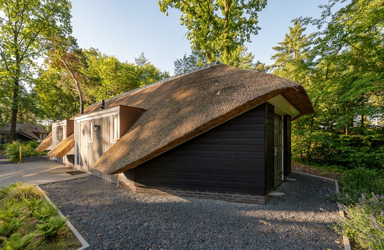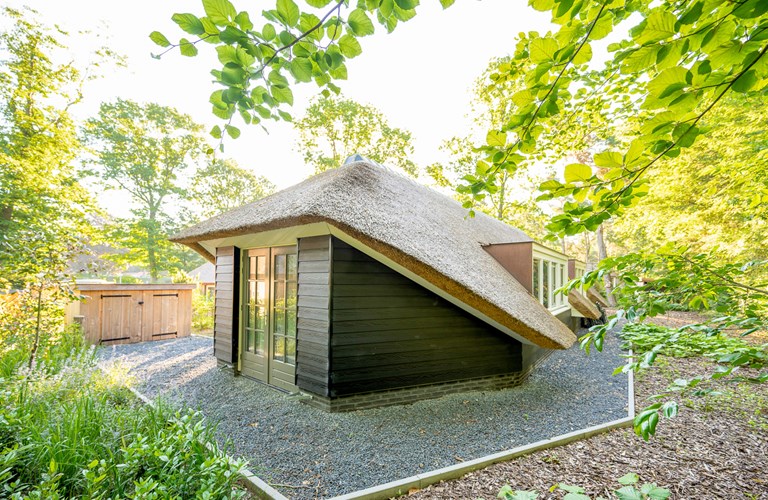 De rietgedekte vakantiewoning ‘’Oehoe’’ ligt in een rustige hoek van het park, dichtbij de ingang en is van vele gemakken voorzien. Het gehele huisje is voorzien van vloerverwarming en er is een gaskachel. Het is geheel gelijkvloers. Er is een schuurtje waar u uw fiets(en) kunt stallen.