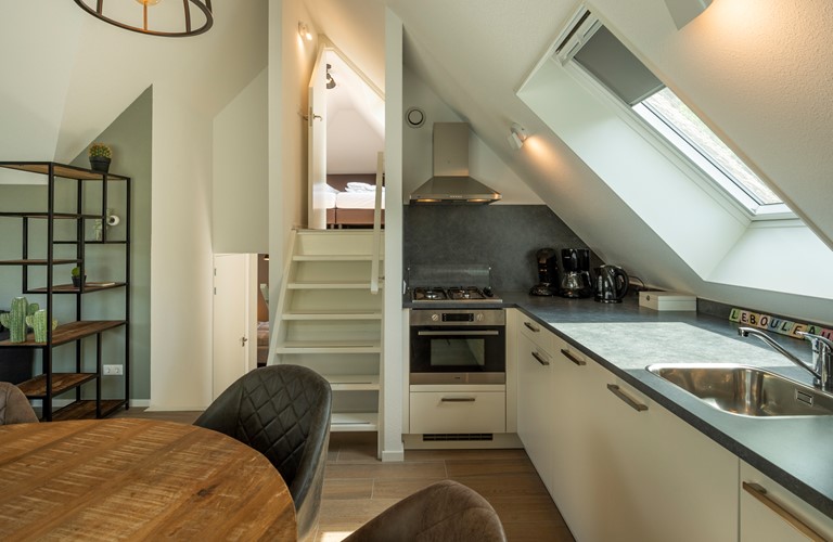 Sfeervol ingericht en complete keuken. Dat het kookstel, gelijk tegen de muur zit, is niet echt handig, een grote pan past niet echt goed en is erg krap. Ook de koelkast is voor 4 of 6 personen erg klein, zeker als het net als bij ons boven de 30 graden is.