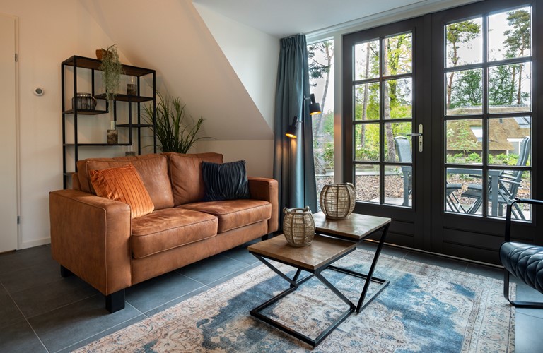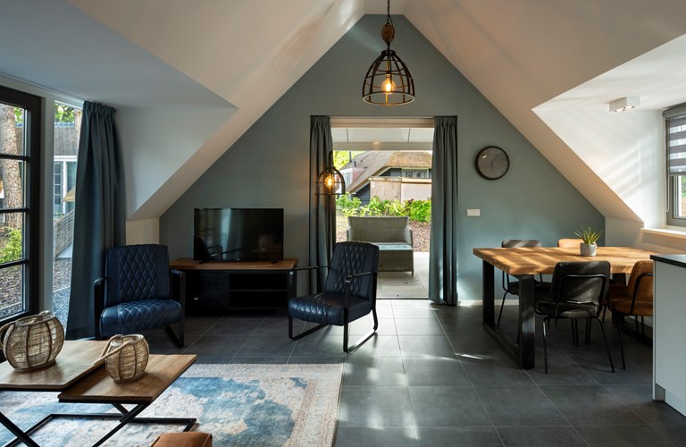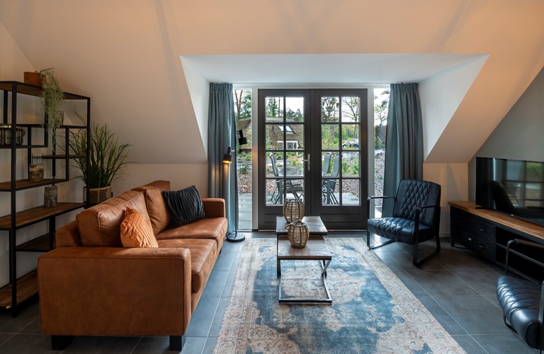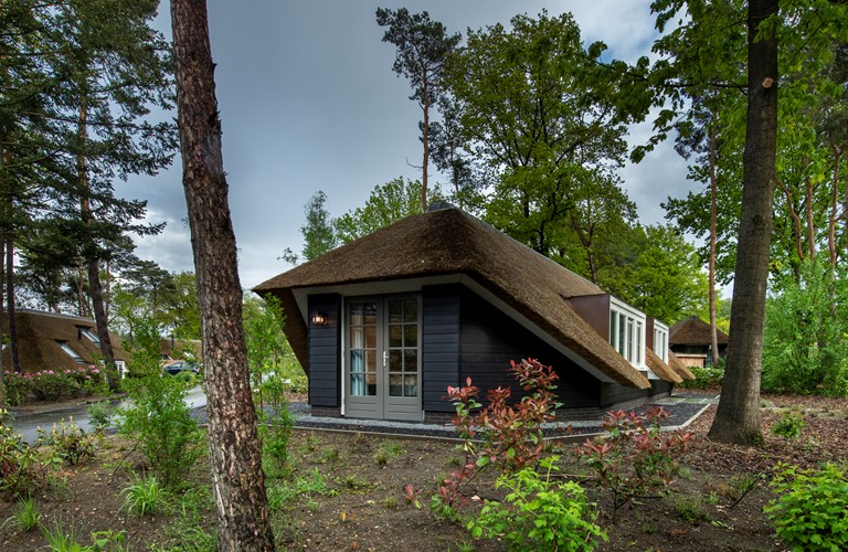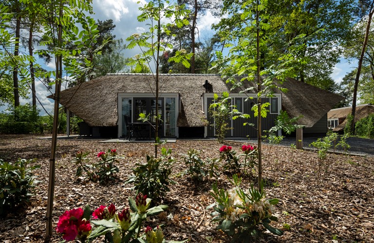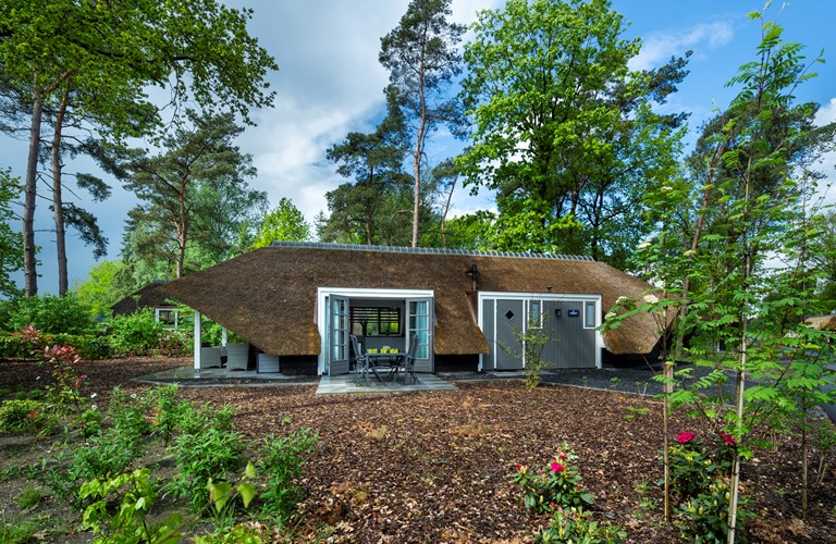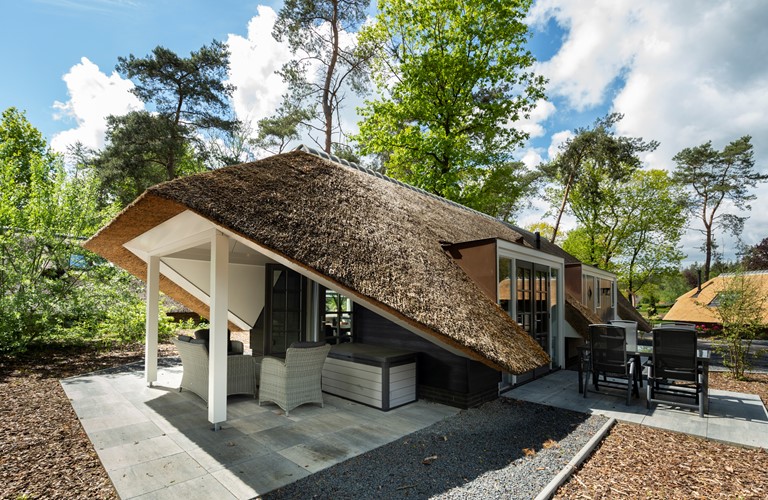 Deze vakantiewoning op vakantiepark Veluwe wordt gekenmerkt door een lange kap waaronder buiten en binnen samenkomen. De ene keer zit u tot in de kleine uurtjes op het overdekte terras, de andere keer geniet u vanachter het raam van een prachtig winterlandschap en warme chocolademelk.
