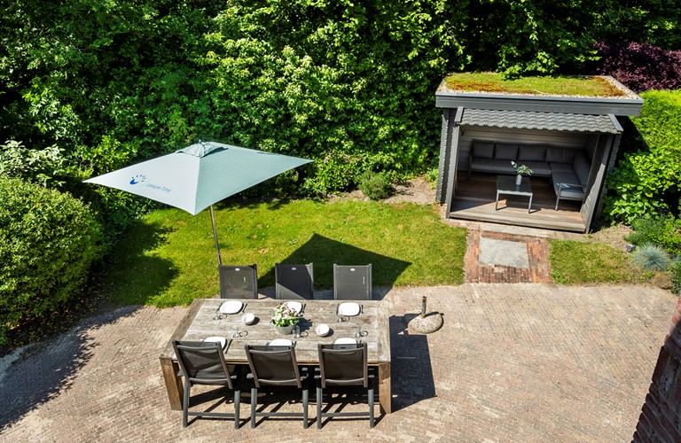 Verder hoort bij de woning tuinmeubilair en is de tuin voorzien van een terras met zonnescherm. In de berging staat de was/droog combinatie