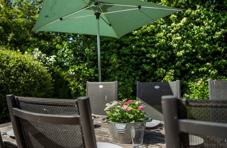 Der kleine sehr gemütliche Garten hat uns gut gefallen, man kann nicht einsehen.