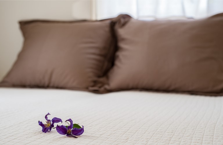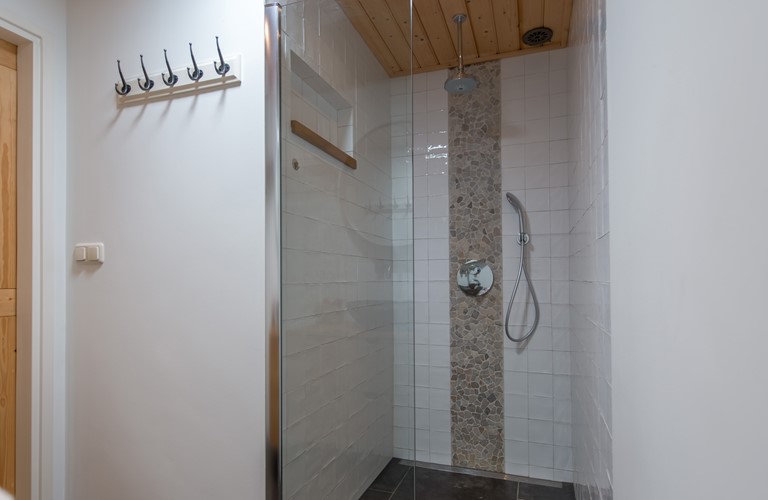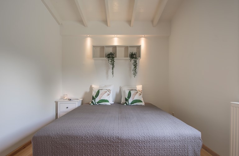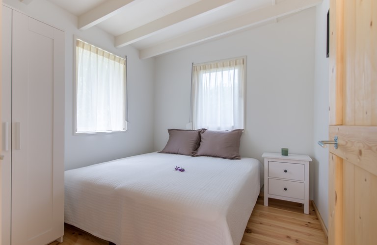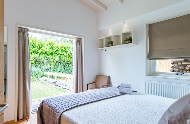 Vanuit de woonkamer heeft u toegang tot 2 slaapkamers elk met 2 éénpersoonsbedden. Via de hal komt u in de masterbedroom met ruime kastenwand en openslaande deuren naar de tuin. Er is een luxe badkamer met regendouche, wastafelmeubel en audiosysteem, zodat u tijdens het douchen van uw favoriete muziek kunt genieten. In de hal is tevens een apart toilet en toegang tot de inpandige berging met wasmachine, wasdroger en magnetron.