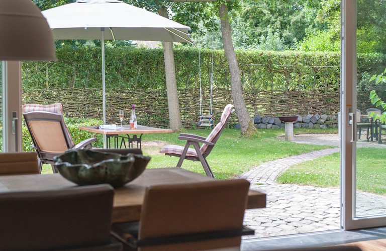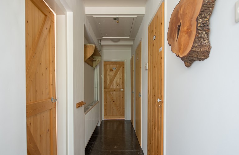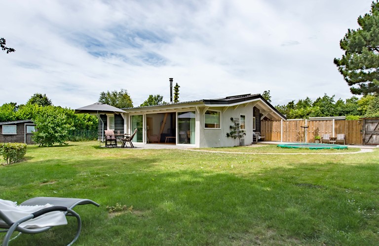 De woning ligt op een royaal perceel (900 m2) aan het einde van een doodlopend laantje. De zonnige tuin is afgesloten met een natuurlijke haag en groen en biedt veel privacy. Hoewel de tuin omheind is, is deze niet 100% afgesloten en kunt u uw viervoeter het beste in het oog houden. U vindt altijd wel een plekje in de zon op één van de terrassen, waar u in alle rust van de tuin kunt genieten. Voor de kleinste gasten is er vanuit de tuin een directe toegang tot de ‘verborgen’ speelweide.