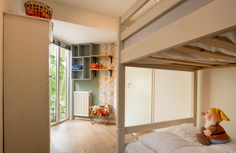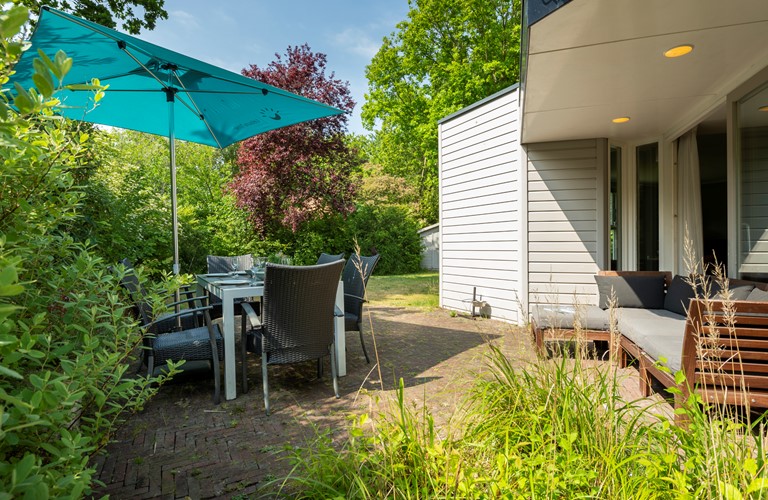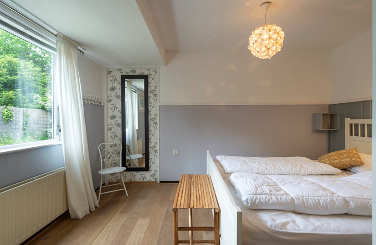 Vanuit de living loopt u zo de tuin in, die volledig is afgesloten om uw verblijf ook voor de kinderen en hond zo aangenaam mogelijk te maken. In de zomer geniet u van de zon op de ligbedden in de tuin. Bij de woning is genoeg ruimte om uw fietsen te stallen en twee auto’s te parkeren.