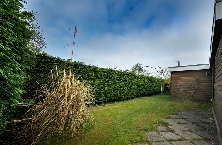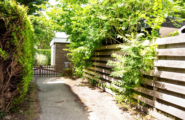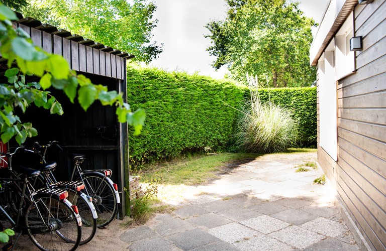 Aan de voorzijde is een overdekte fietsenstalling. Uw auto parkeert u veilig op een eigen parkeerplaats. Het parkeerterrein biedt plaats voor twee auto’s.