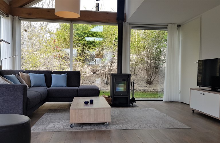 Dit moderne, lichte strandhuis is uitgerust met kwaliteitsmeubilair. De woonkamer met aansluitende eethoek en open keuken zorgt voor veel interactie. Ook de koudere dagen zijn aangenaam door de vloerverwarming en sfeervolle houtkachel. Op de begane grond vindt u een slaapkamer met badkamer en suite en apart toilet. De verdieping heeft twee slaapkamers, een badkamer met douche en apart toilet. Het fijne van deze woning is dat de slaapkamers boven over dakramen beschikken welke de beluchting automatisch regelen. Hierdoor is het in de zomer beduidend koeler op de slaapkamers.