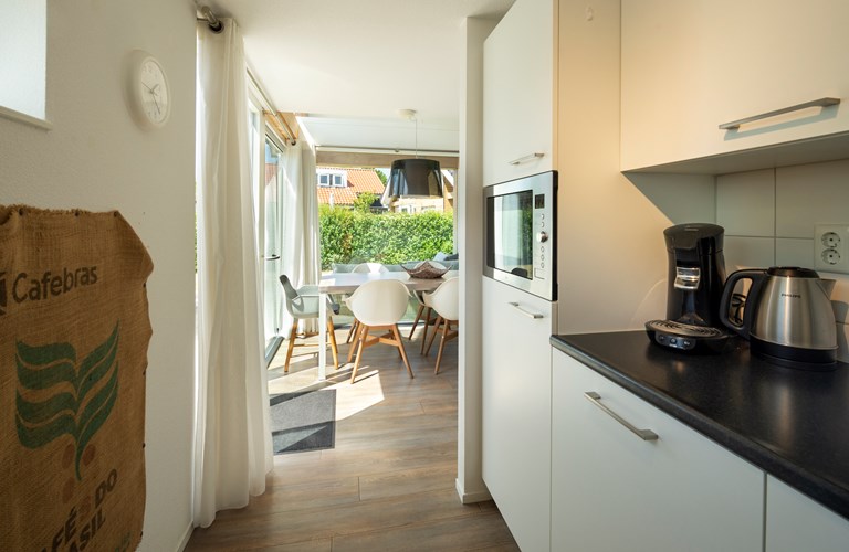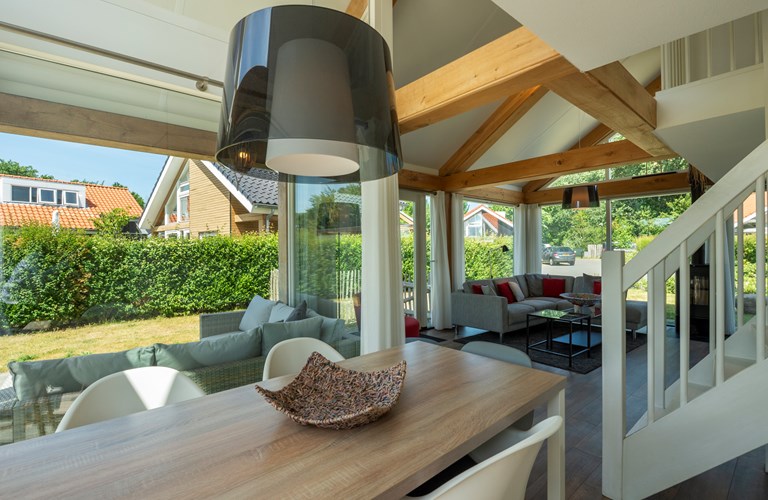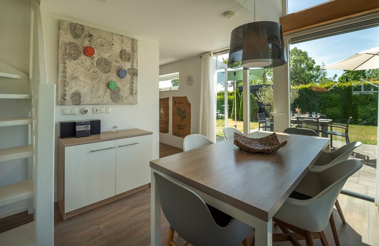 Dit moderne vakantiehuis is stijlvol ingericht met een comfortabele zithoek met aangrenzend een gezellige eethoek en een open keuken welke een echt kustgevoel uitstraalt. De keuken is van alle gemakken voorzien, waaronder diverse apparatuur zoals de Miele vaatwasser, maar ook een poffertjesmaker zodat u met de kinderen samen poffertjes kunt maken. De houtgestookte open haard zorgt voor sfeer en knusheid in de woning, zeker op de koudere dagen. Op de begane grond is er een slaapkamer met een fijne ensuite badkamer. Tevens is beneden een apart toilet beschikbaar. De bovenste verdieping heeft twee slaapkamers, een extra badkamer en een apart toilet. Het fijne van deze woning is dat de slaapkamers boven over elektrische dakramen beschikken welke de beluchting automatisch regelen. Hierdoor is het in de zomer beduidend koeler op de slaapkamers, zeker wanneer u ook de elektrische rolgordijnen overdag dicht houdt. Nog één van de vele voordelen van deze woning in de zomermaanden.