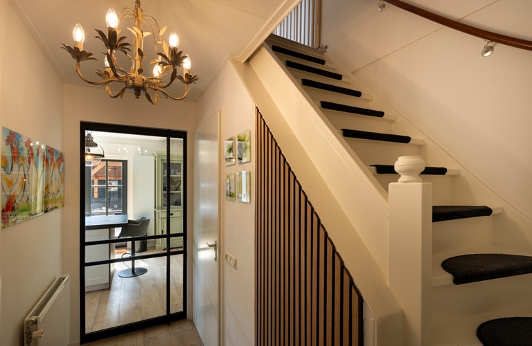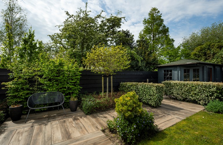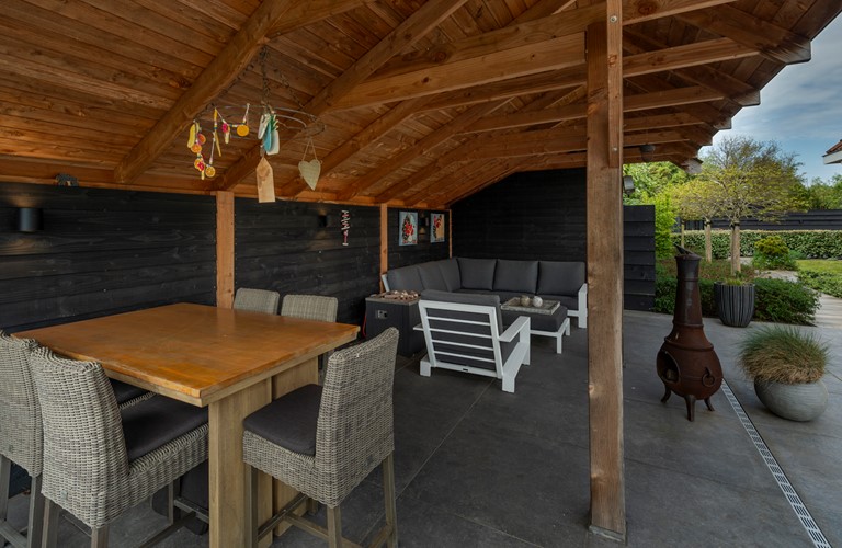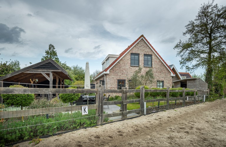 Rondom de woning treft u een royale tuin met verschillende op het zuiden gelegen terrassen en een heerlijke overkapping met loungehoek, hoge bartafel en buitenhaard aanwezig. Ook is er nog een eetgelegenheid welke grenst aan de rijbak van de buren, waar regelmatig paarden staan. Om de tuin is een hekwerk geplaatst, waardoor u uw hond en de kinderen met een gerust hart buiten kunt laten spelen. Er is een apart tuinhuisje voor het stallen van bijvoorbeeld fietsen. Er is parkeergelegenheid voor vier auto’s welke u veilig kunt parkeren. De woning en oprit worden afgesloten middels een automatisch hekwerk.