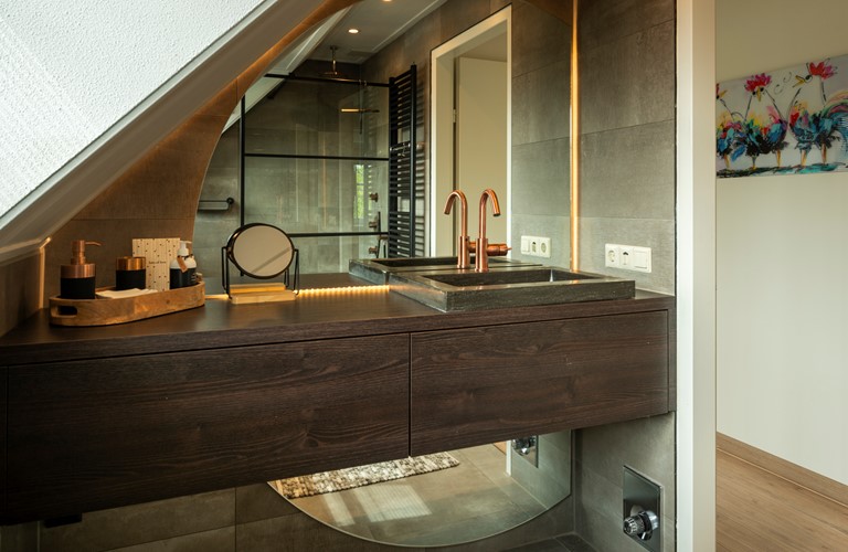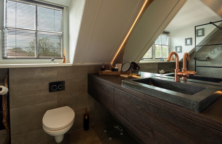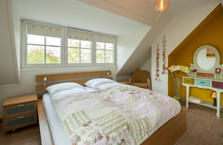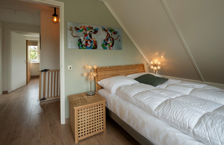 Er zijn drie slaapkamers op de eerste verdieping in het huis te vinden. 1 Van de slaapkamers biedt plaats voor 4 personen en beschikt over 2 tweepersoonsbedden. Uiteraard is er ook een ruime en luxueuze badkamer aanwezig met regendouche en toilet. Een tweede aparte toilet bevindt zich beneden.
