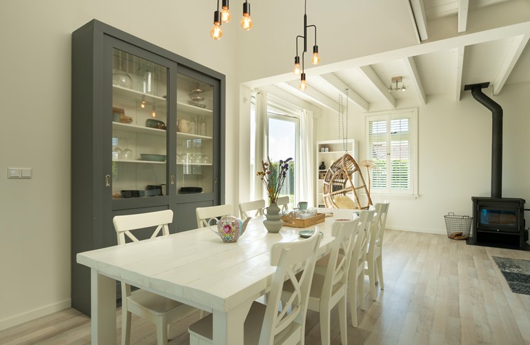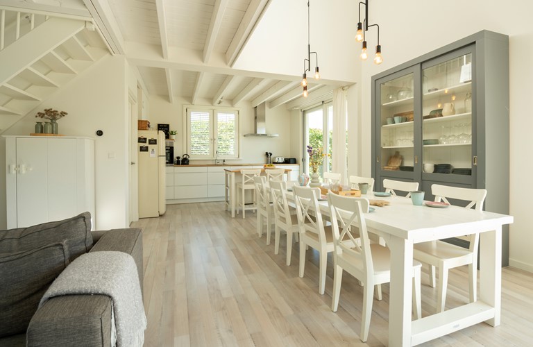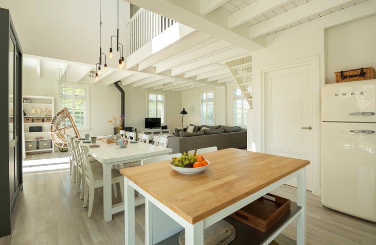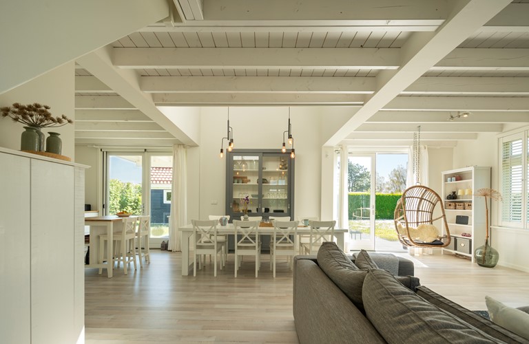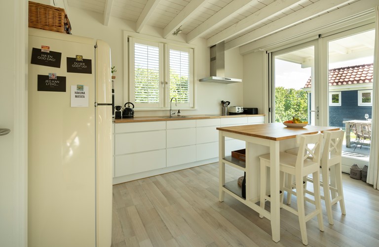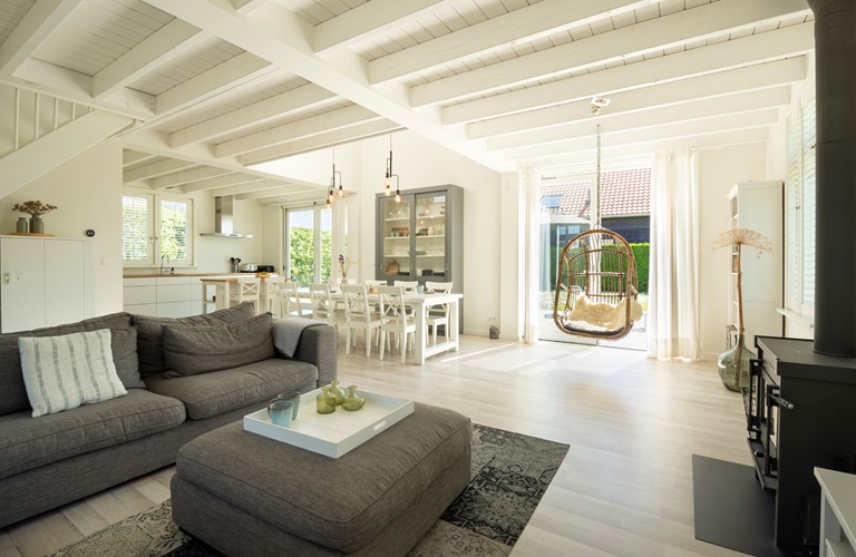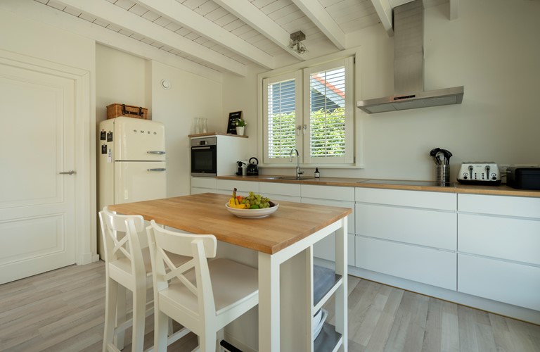 Dit heerlijke vakantiehuis heeft een sfeervolle woonkamer met zithoek en houtkachel en grenst direct aan de eethoek en moderne, compleet uitgeruste keuken. De inrichting van het huis geeft een fijn strandgevoel. In het huis vindt u drie royale slaapkamers, met heerlijke bedden. De badkamer is uitgerust met luxe regendouche, wastafel en toilet. Een extra apart toilet is aanwezig.