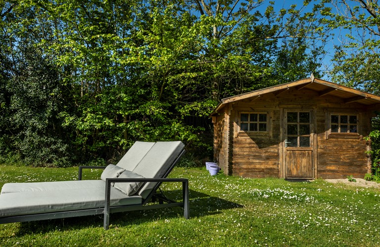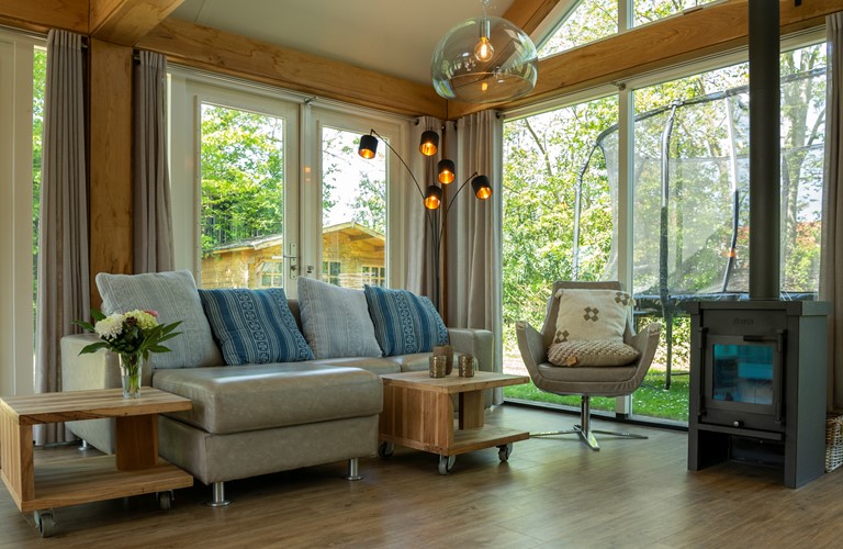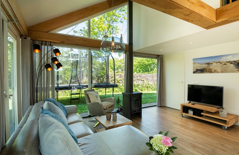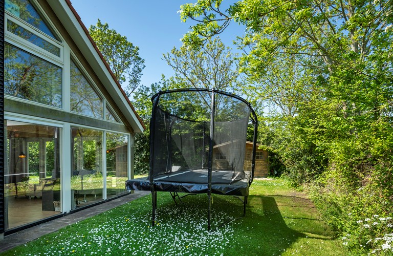 Vanuit de luxueuze loungeset kunt u heerlijk relaxt de kunsten van uw kinderen op deze trampoline aanschouwen en genieten van de prachtige grote tuin met veel privacy. Als u geluk heeft lopen er zelfs herten in de tuin.