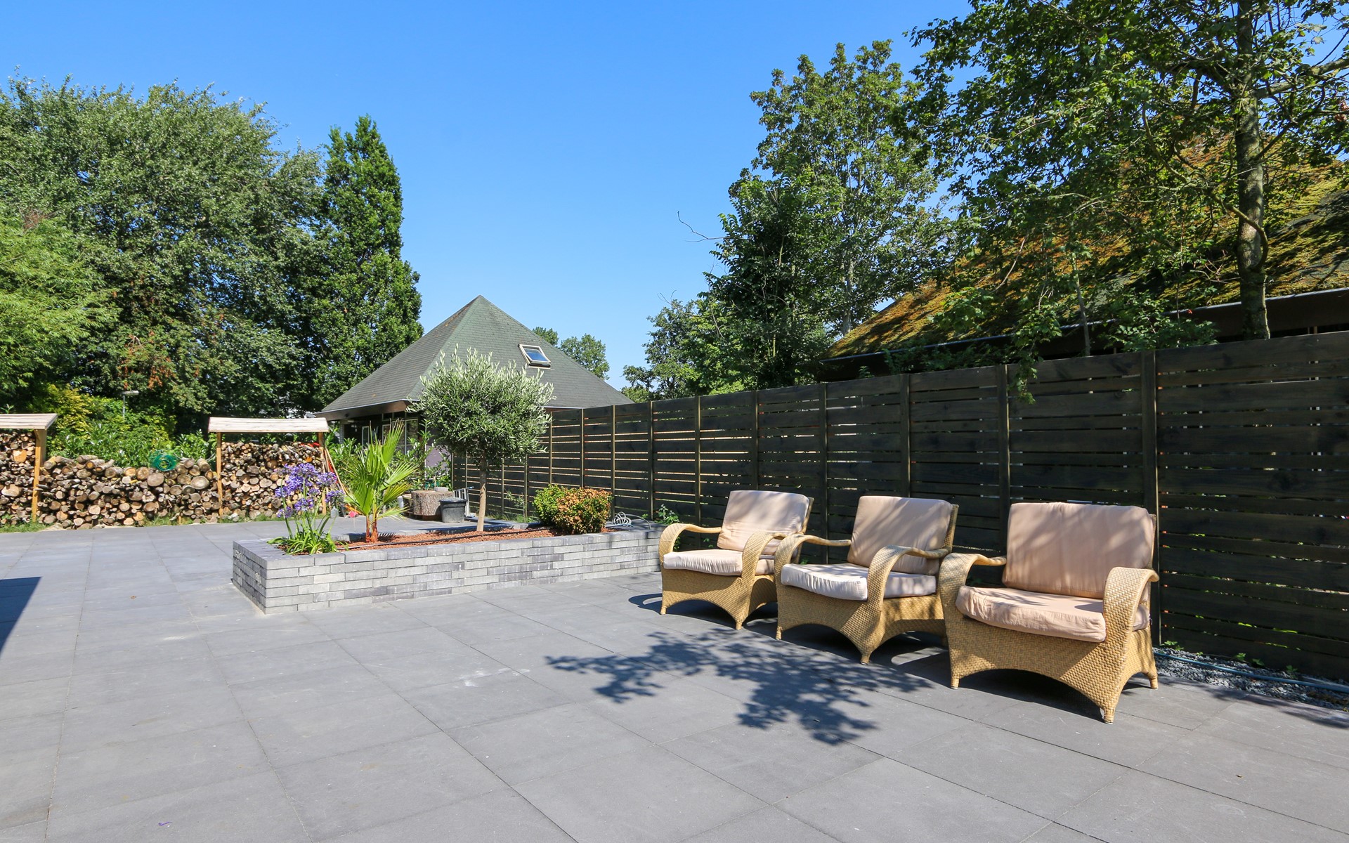 Besonders großzügig ist der Gartenbereich, hier vor allem die zahlreichen Sitzgelegenheiten.